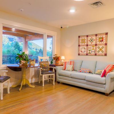 Our homes have been engineered with the latest in health and safety products to protect your loved ones. You will enjoy the comforts of one of our 12 private bedrooms each with your own full bath. Big spacious windows that bring in natural light. These windows are adorned with black-out-shades for privacy and controlling sleep habits with the morning light. We welcome you to bring your own furniture! Small community areas are found throughout the homestead that encourage conversation, entertainment, family dining, healthy living and activities determined by the residents living in the home. Having smaller community gathering areas will support the need for 6 feet distancing but NOT isolate you to your room or from conversation and friendship. Learn more about our safety first policy.